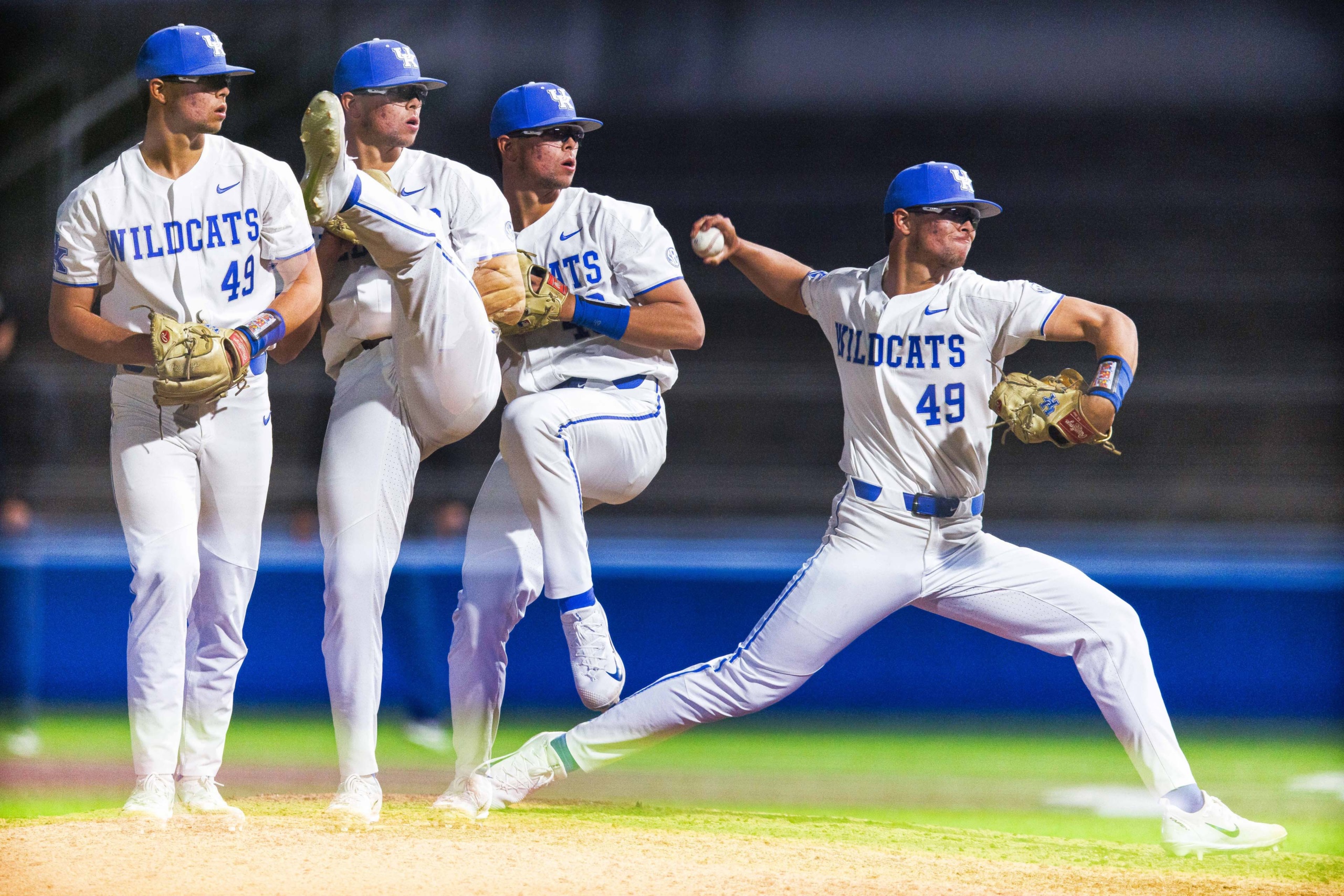 Kentucky Wildcats pitcher Austin Strickland pitches during the game against Morehead on Tuesday, Mar. 22, 2022, in Lexington, Kentucky.