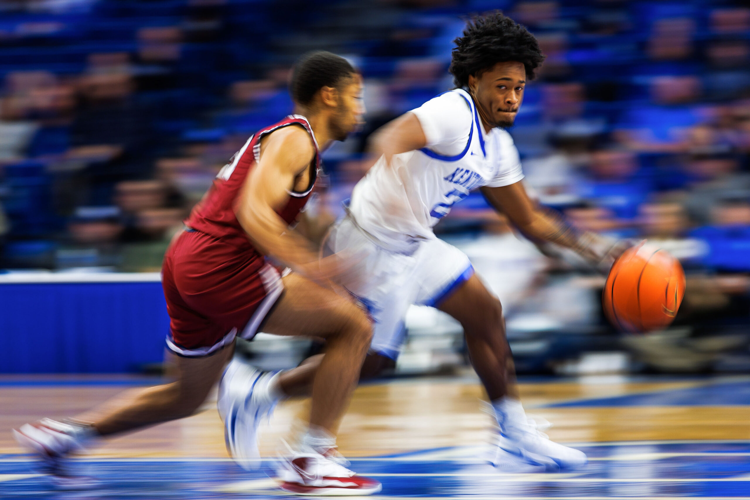 Nov 17, 2022; Lexington, Kentucky, USA; Kentucky Wildcats guard Kareem Watkins (25) moves the ball during the second half against the South Carolina State Bulldogs at Rupp Arena at Central Bank Center. Mandatory Credit: Jordan Prather-USA TODAY Sports