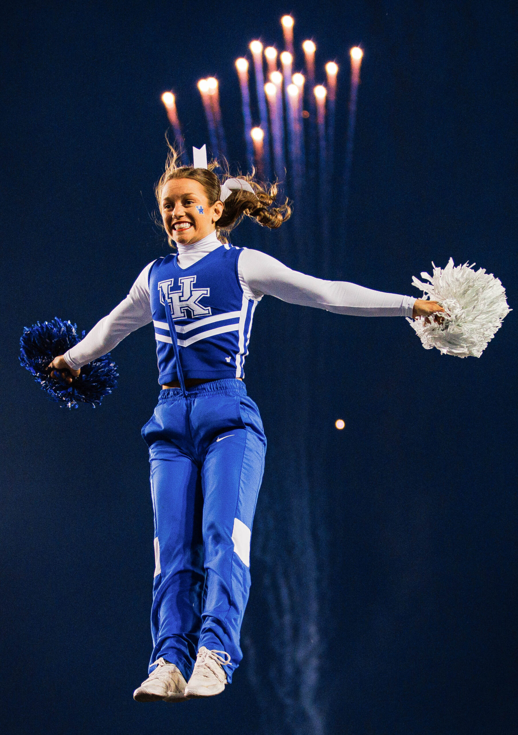 Nov 26, 2022; Lexington, Kentucky, USA; Kentucky Wildcats cheerleaders perform during the fourth quarter against the Louisville Cardinals at Kroger Field. Mandatory Credit: Jordan Prather-USA TODAY Sports